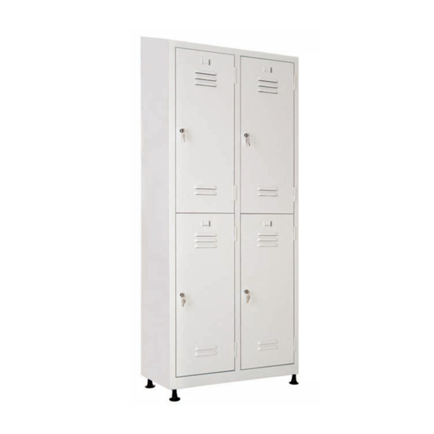 Шкафът е изработен от стомана с дебелина 0.7 мм и е защитен с прахово полимерно покритие в сив цвят RAL 7035. С конструкция от четири отделни врати на две нива, всяко отделение има собствено заключване, релса и две закачалки. Вентилационните отвори и регулируемите крака осигуряват комфорт и стабилност при употреба.