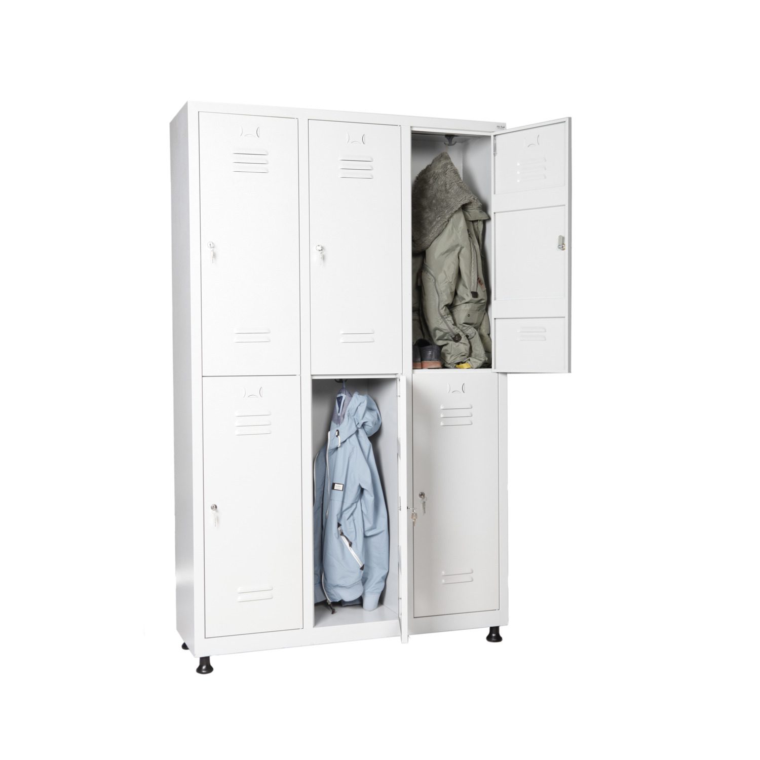 Моделът AP6 1200 400 H1980 представлява професионален метален гардероб с шест отделения, предназначен за съблекални, спортни обекти, училища, производствени предприятия и други среди, където се изисква сигурно и организирано съхранение на вещи.